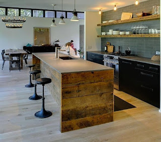 En cocinas el acero inoxidable es el protagonista. Paramentos de ladrillo. Encimeras de madera o piedra. El bajante y tuberías a la vista, disfrazados con estilo.